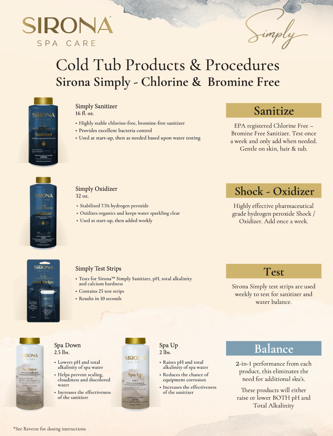- Lowers pH and total alkalinity of spa water
