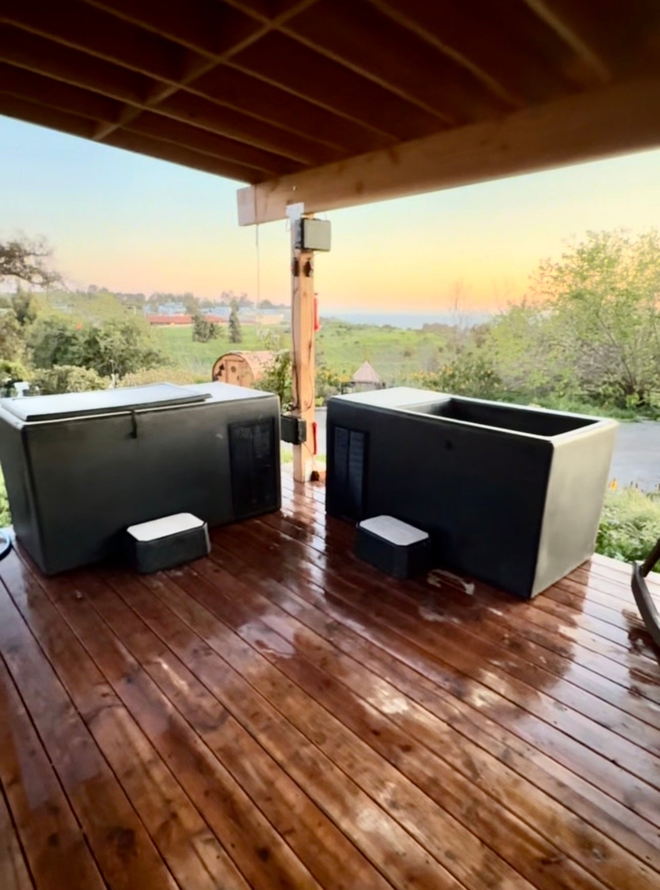 Our Cold Creek Sisu setup is absolute perfection. The quality of the materials, marine-grade foam up top, the magnetic grates on the sides for easy access to equipment, and the efficient chiller are a game changer over our previous setup. Most importantly, Payton and the Cold Creek team are highly communicative and treat you like family. This team is quick to respond and always available to help. I am 6’4” and the tub feels deep! It thoroughly covers my entire body and it’s easy to dunk too. The water is always crystal clear due to the the next-level filtration and ozone system that runs each night. I’d also like to add the unit is whisper quiet and looks so nice next to our Sisu cabin sauna. Thank you Cold Creek!